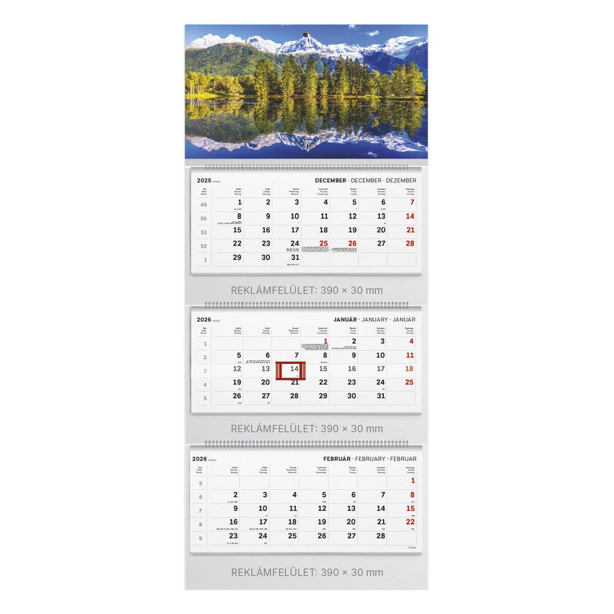 T082, 3 tömbből álló 3 havi spirálos speditőr naptár - Hegy fejrésszel