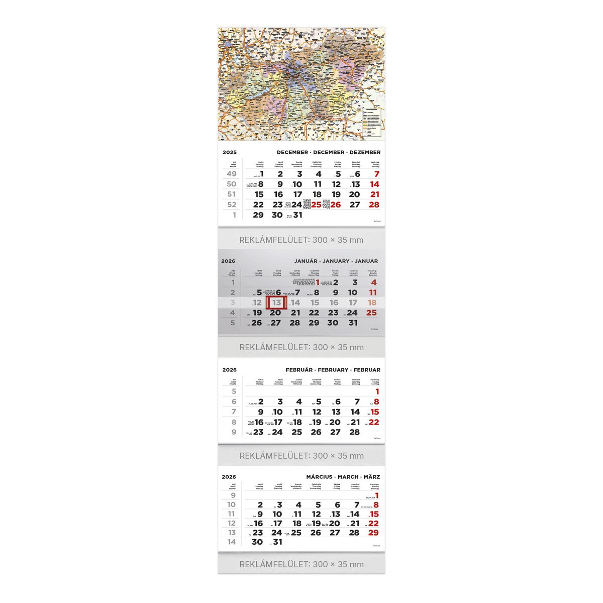 T073, 4 tömbből álló 4 havi speditőr naptár - Magyarország térkép fejrésszel