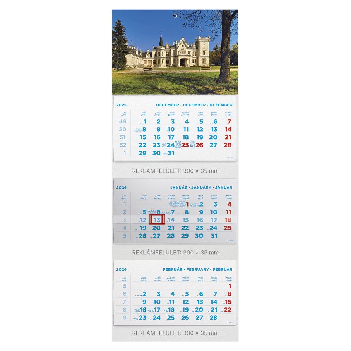 T075, 3 tömbből álló 3 havi speditőr naptár - Kastély fejrésszel
