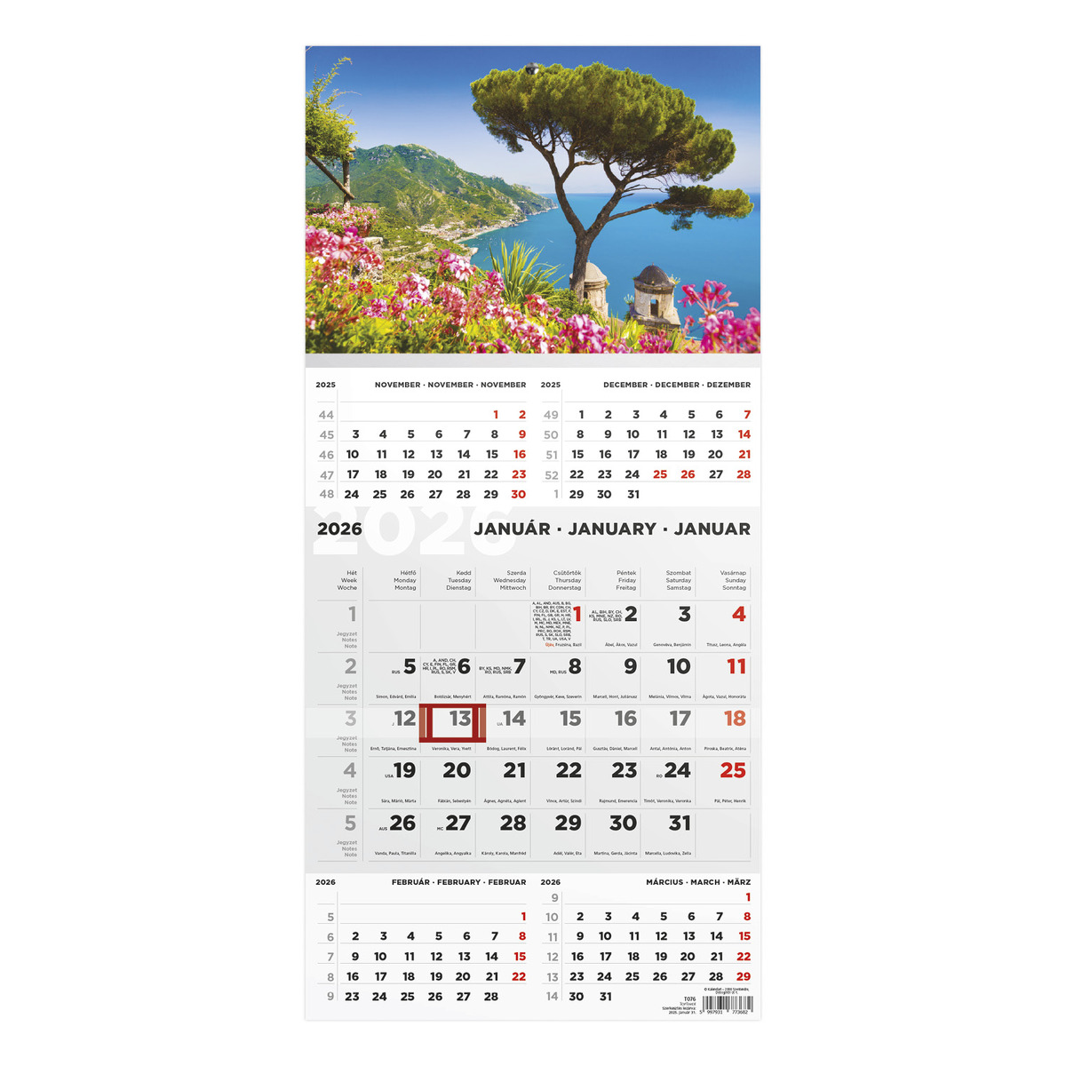 T076, 1 tömbből álló 5 havi speditőr naptár - Táj fejrésszel